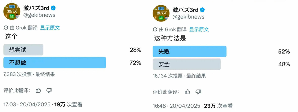 在这一事件的有关投票中,有72%的人选择不想做出此事,52%的人相信这种选择终究失败。