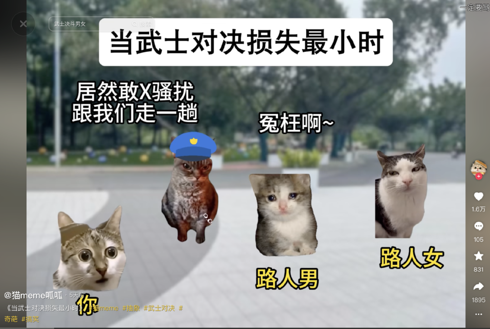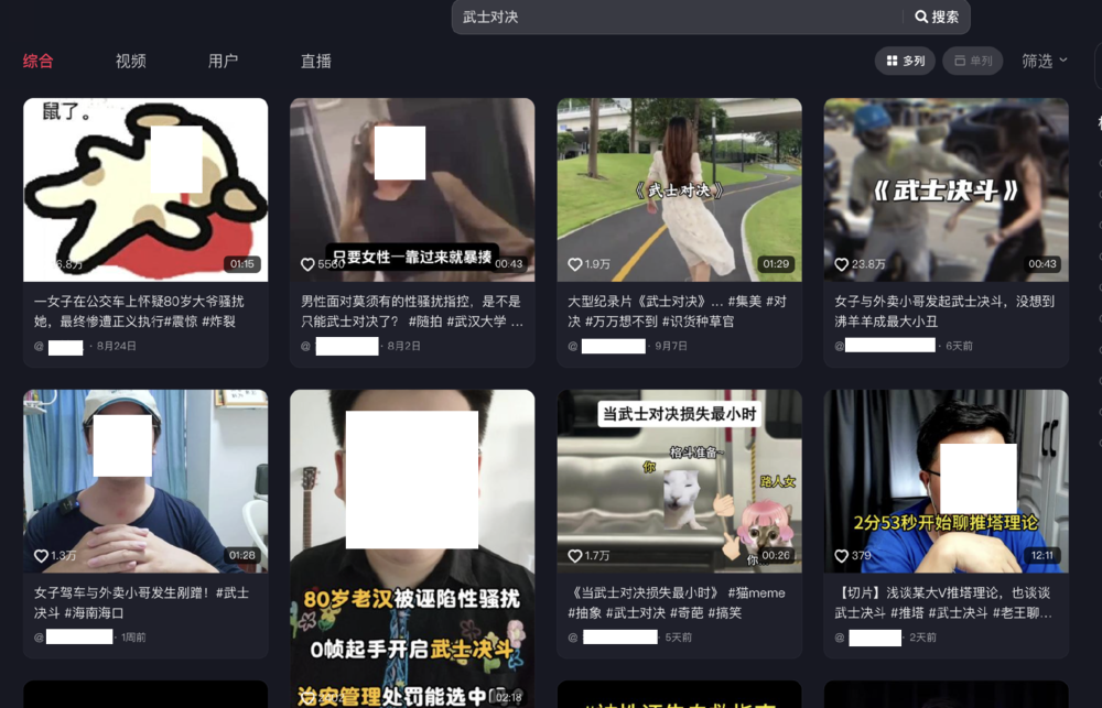 在最近一个叫作#武士对决#的话题下,即使视频中男人打了女人,评论区也几乎一边倒地支持前者。