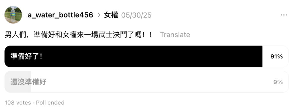 除了互联网身份政治的禁锢,在现在的社媒上,性别也是目前唯一一个能够被深度探讨的公共议题。所有的矛盾无论从何而来,都只有这一个出口