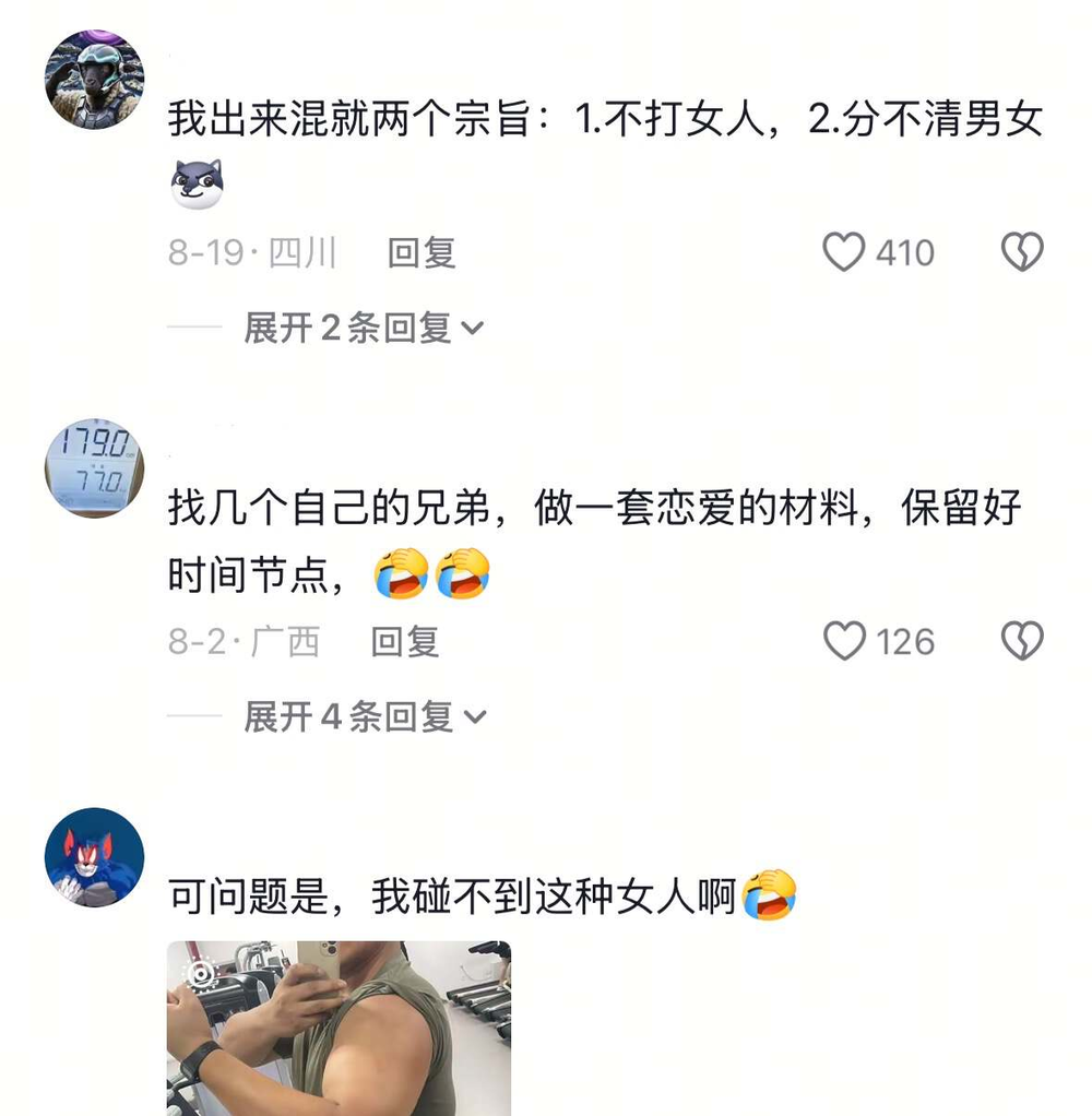 无论是车祸、性骚扰和偷拍指控,还是食堂占座这些鸡毛蒜皮的小事,只要有一方是女性,一些声音就会开始起哄,支持动手解决来避免解释不清楚的情况出现。