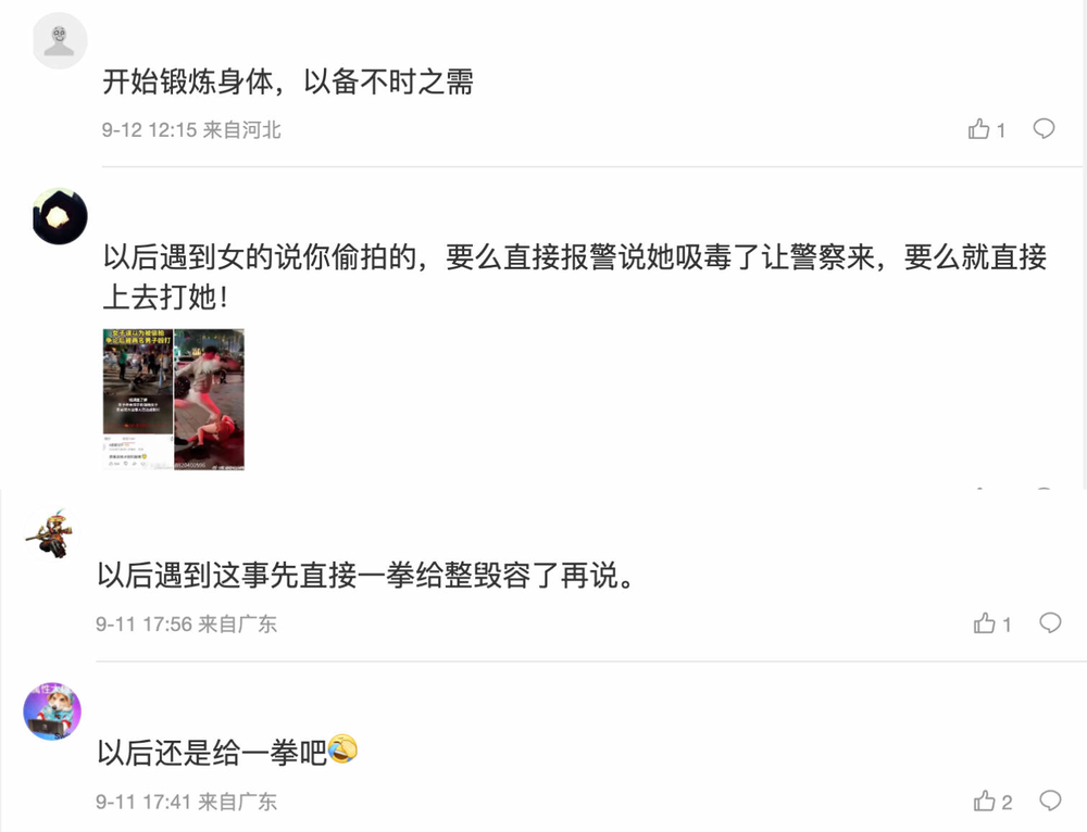 但还是有为数众多的支持者言论认为,当被指控莫须有的罪名时,直接出拳可能是保护自己的一种方式,也是解决矛盾的最优解。
