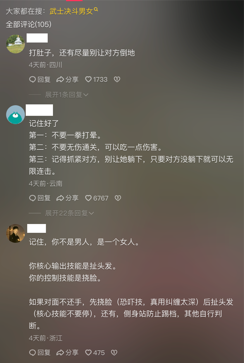 甚至已经有人总结出了一套适用于男女双方的武斗教程。