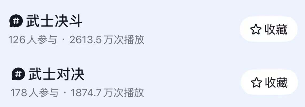 虽这些事的对错不是可以主观判断的事情,但男性的怒火被毫不意外地点燃了。在这个节骨眼,#武士对决#乘上高涨的情绪,走上热门。